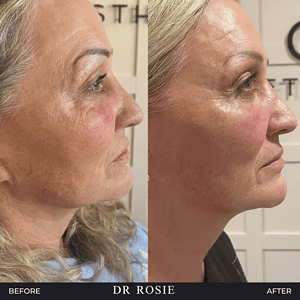 You’ll start to see results immediately from the tissue tightening after your first treatment, with the full effects after your second treatment visible at around 12 weeks. We recommend maintenance treatments around 6 months. In patients with more severe signs we often recommend a course of 3 treatments every 2 weeks.