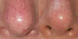 Red & purple veins, thread veins, red spots, spider veins and rosacea.
